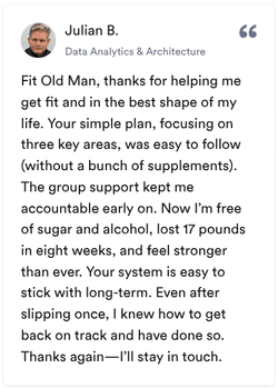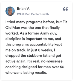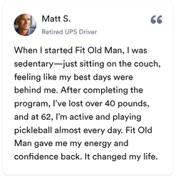 Complexity is the enemy of consistency. Many programs don’t work because they’re confusing. Fit Old Man takes a different approach: one straightforward lesson each week for eight weeks. No confusion, no overtraining, no complex charts. Just clear guidance for busy men so you can stop stressing and start making progress.